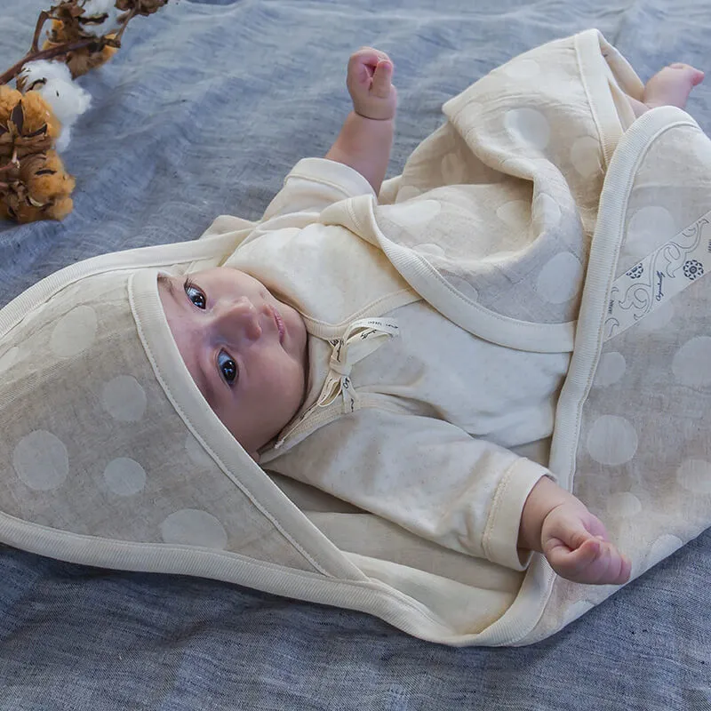 オーガニックコットンのおくるみは赤ちゃんを抱きやすくし、柔らかな素材なのでお腹にいた時の安らぎを感じることができます。