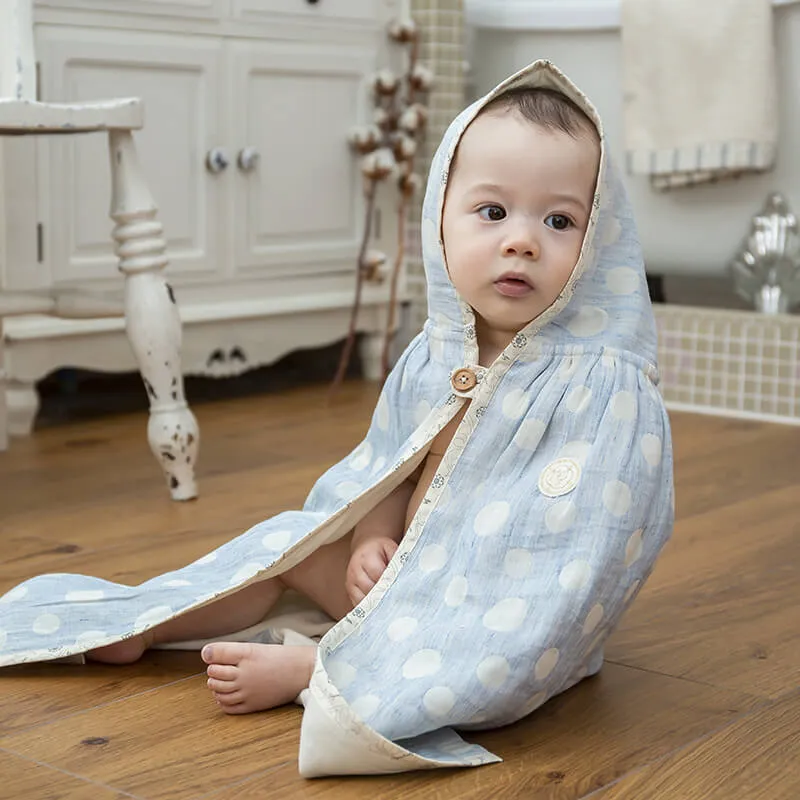 水玉ブルー 4重ガーゼバスローブ【ポンチョ】