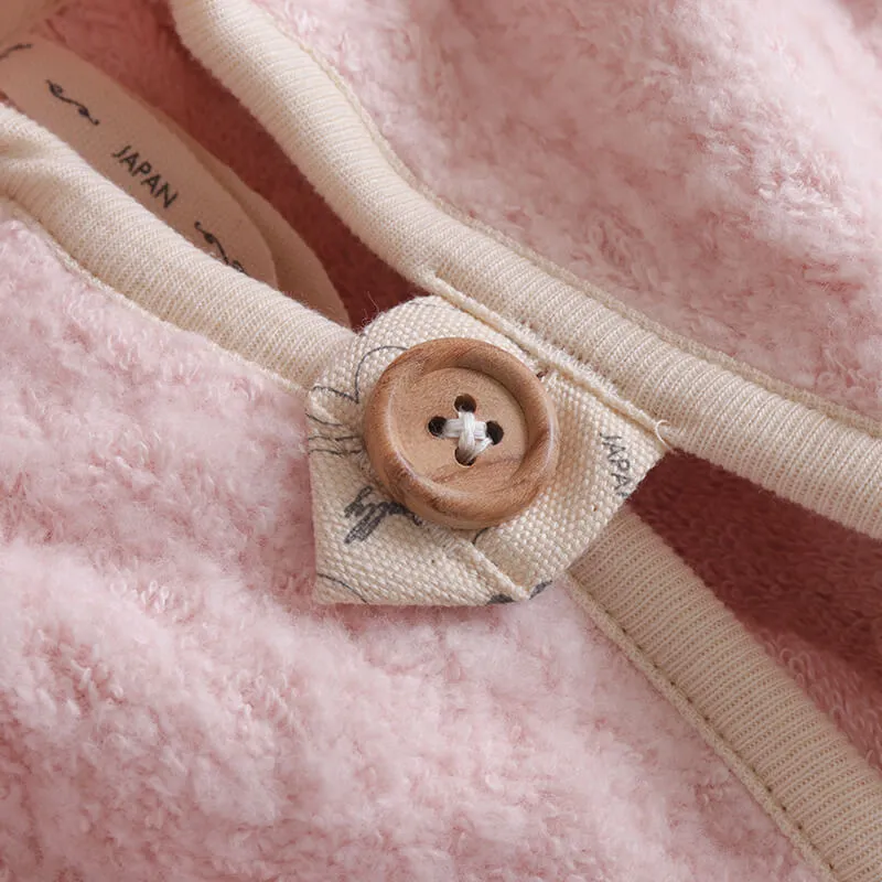 柔らかピンクのオーガニックコットンポンチョバスローブ