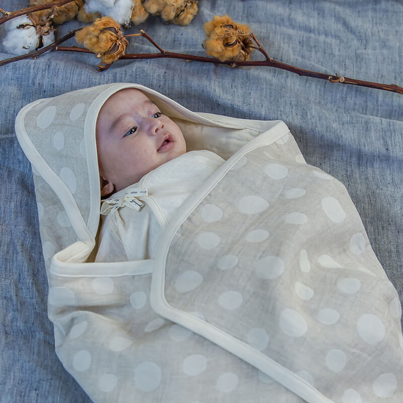 無染色 水玉ベージュ 4重ガーゼおくるみ
