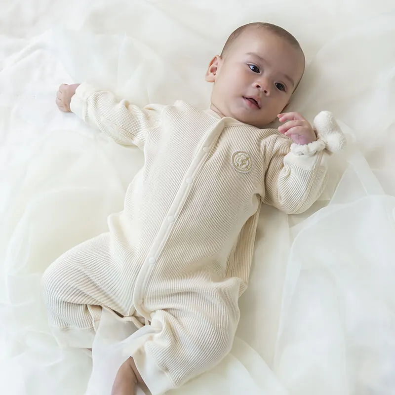 無染色オーガニックコットンワッフル生地のロンパース
