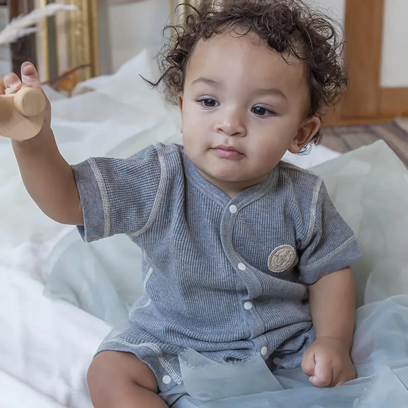 暑も日に快適、半袖オーガニックコットンワッフルロンパース