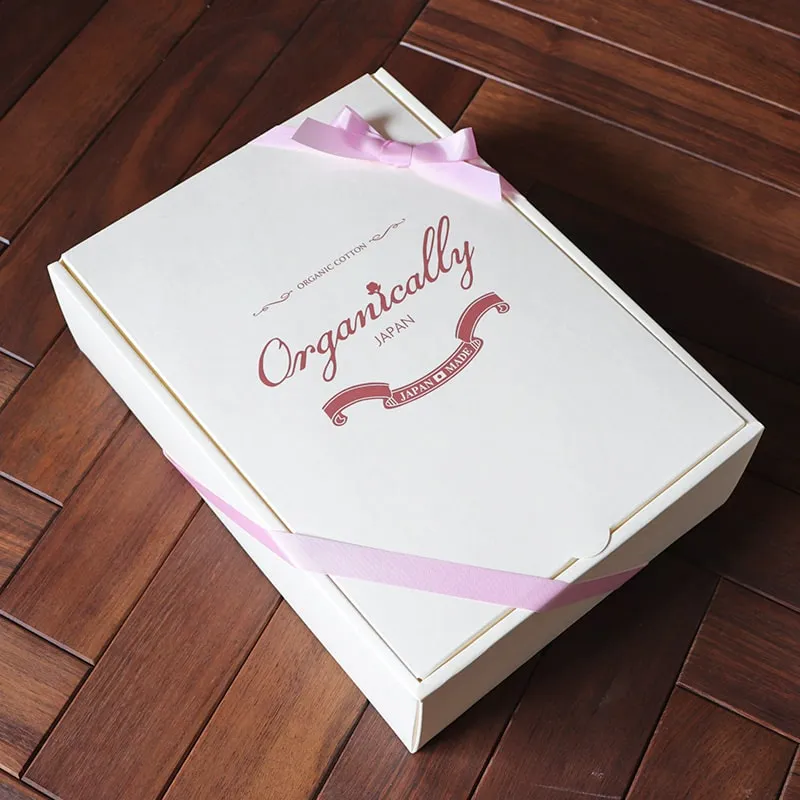 オリジナルのギフトボックスとオーガニックコットンを使用したエコバックラッピング、熨斗の無料サービスを揃えています。きちんとした感じで送りたい場合はギフトボックスがおすすめですが、エコバックはその後、おむつ入れやお着替え入れとして役に立ちます。