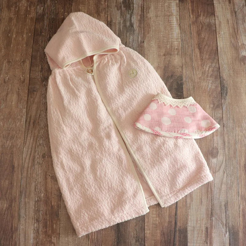 ピンクのポンチョバスローブとガーゼスタイのギフトボックス