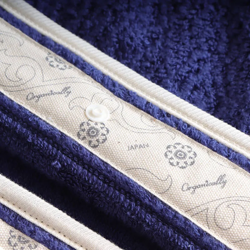 オーガニックコットンそのままの良さを損なわないよう化学的な力に頼らず糸となり、今治の老舗機屋で程よい厚みと柔らかなパイル生地に仕上げられています。