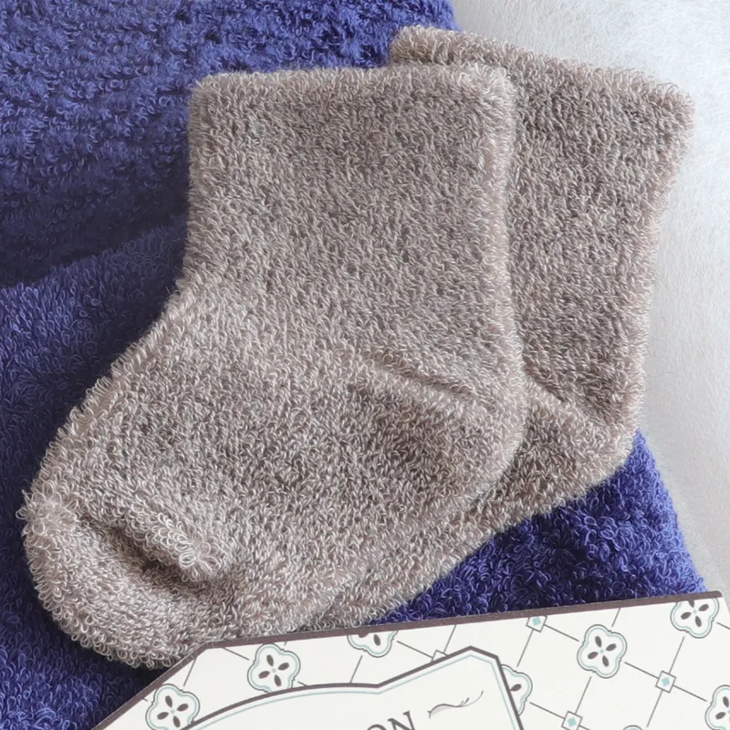 <バスローブ/ハンドタオル>生地=オーガニックコットン100%(今治産) スナップボタン=プラスチック(エコテックス認証<パイル靴下> コットン(オーガニックコットン)65%、毛(ヤク)15%,ナイロン15%,ポリウレタン5%