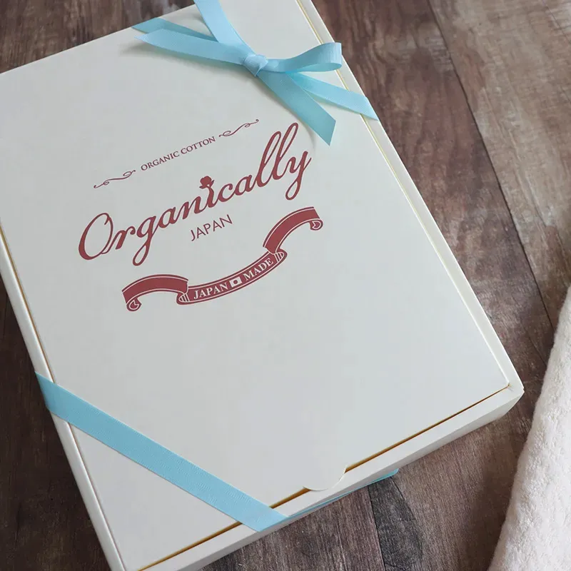 オリジナルのギフトボックスとオーガニックコットンを使用したエコバックラッピング、熨斗の無料サービスを揃えています。きちんとした感じで送りたい場合はギフトボックスがおすすめですが、エコバックはその後、おむつ入れやお着替え入れとして役に立ちます。