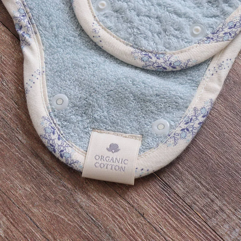 生地=オーガニックコットン100%(今治産)※パイピングもオーガニックコットン100% 赤ちゃんに安心のオーガニックコットン100% スナップボタン=プラスチック(エコテックス認証)