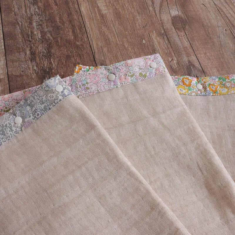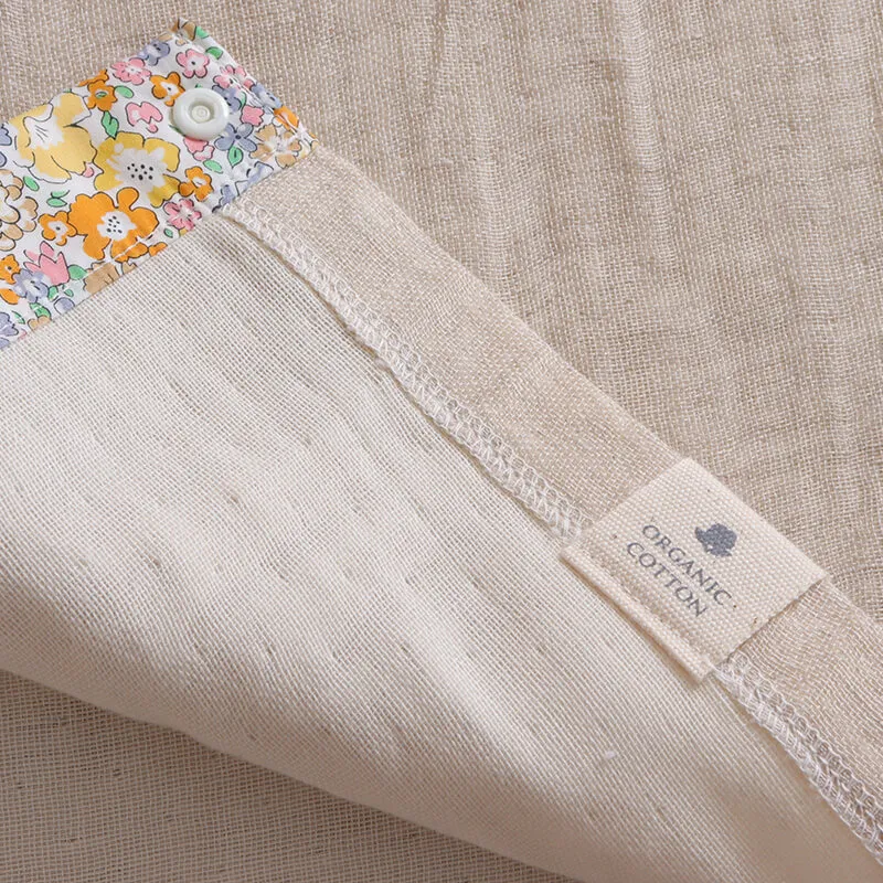 外出時に役立つ多機能タイプのガーゼブランケットです。6か所に配置されたスナップボタンを留めることで、用途に合わせてさまざまな使い方が可能。授乳ケープとして、ベビーカーや抱っこ紐に取り付けて日よけとして、肌寒い日の防寒対策としても活躍します。赤ちゃんとのお出かけをより快適にサポートしてくれるアイテムです。